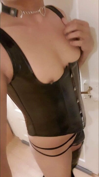 الخنثى الصغيرة الجديدة والملابس السوداء الصغيرة المصغرة أشقر طويل